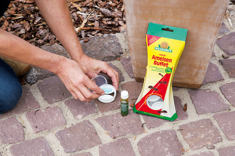 - Ameisen in Pflanzen: Ameisen sind keine Pflanzenschädlinge, daher ist ein Einsatz von Ameisenmitteln an Pflanzen nicht zugelassen. Sobald Sie die Tätigkeit der Ameisen bemerken, treten Sie die Erde um die Pflanzen regelmäßig wieder fest. Wässern Sie die Pflanzen zudem häufiger intensiv. In der Regel verschwinden die Ameisen dann bald. Da sich Ameisen vor allem wegen vorhandener Blattläuse an den Pflanzen befinden, bekämpfen Sie die Blattläuse (z.B. mit Spruzit Schädlingsfrei*,°°). So verschwinden gleichzeitig die Ameisen.