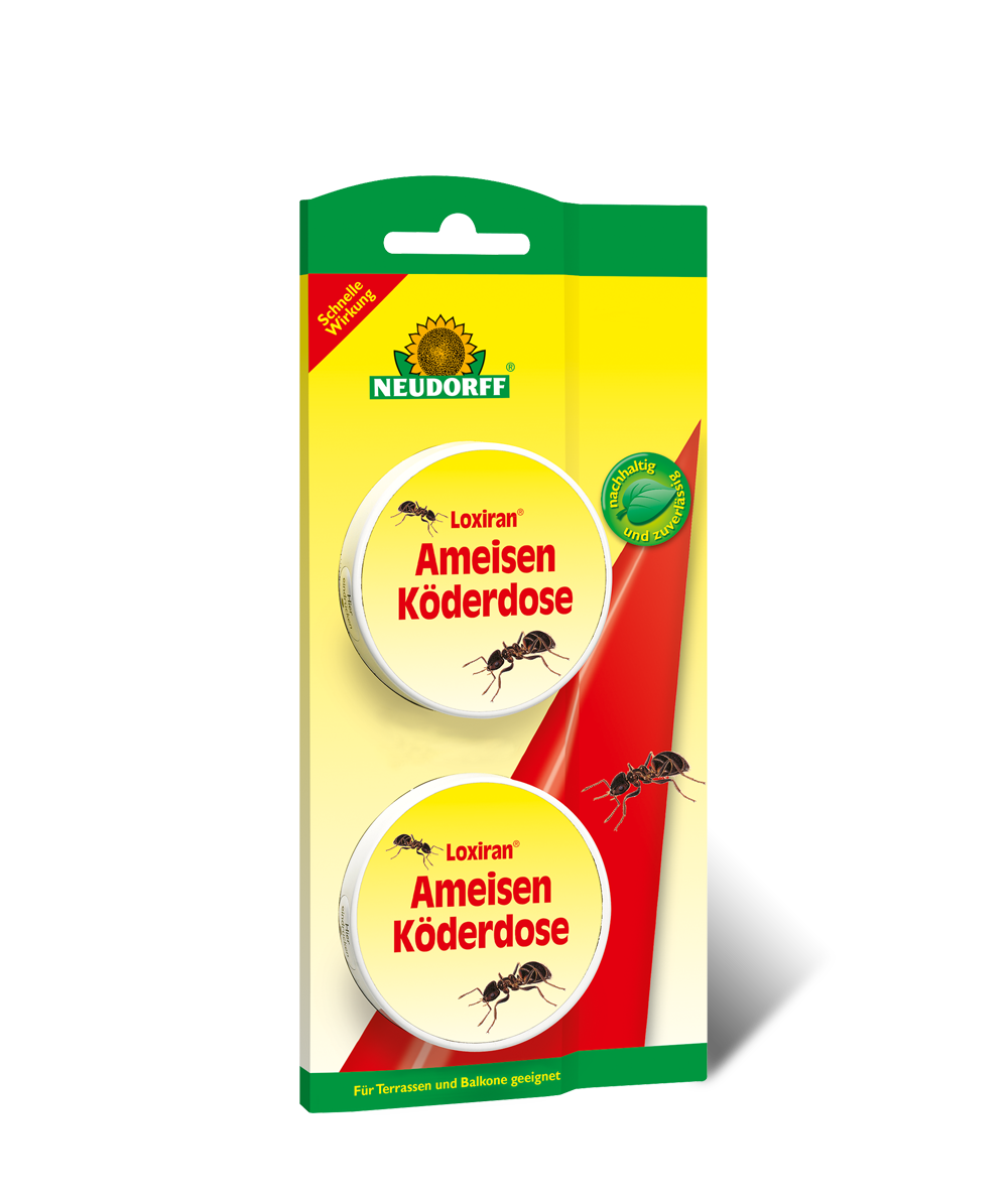 - Ameisen in geschützten Bereichen (wie z.B. Wohnräume, Terrassen, Balkone oder Gewächshäuser): Einsatz der Loxiran AmeisenKöderdose oder des Loxiran AmeisenBuffets. Direkt in der Ameisenstraße aufstellen. Das Buffet regelmäßig kontrollieren und nachfüllen. Loxiran AmeisenSpray** wirkt gegen einzelne Ameisen oder Ameisenschwärme in Innenräumen. Vor der Anwendung an unauffälliger Stelle prüfen, ob das Spray auf diesem Untergrund Flecken hinterlässt.