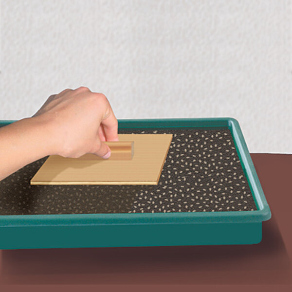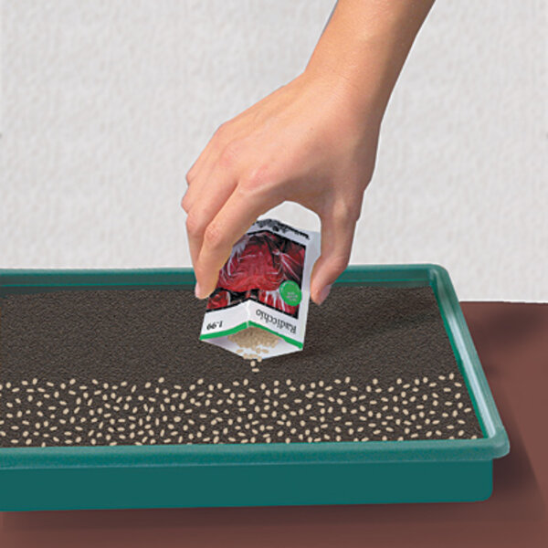 2. Streuen Sie den Samen gleichmäßig und dünn aus und bedecken Sie danach die Samenkörner mit einer dünnen Schicht Erde in Samenkorn-Stärke. Drücken Sie die Erde wieder leicht an. Ausnahme: Lichtkeimer brauchen keine schützende Erdschicht, darum decken Sie diese Samen nicht mit Erde ab. Streuen Sie etwas Sand über die Samenkörner und drücken Sie auch diese mit einem Holzbrett an.