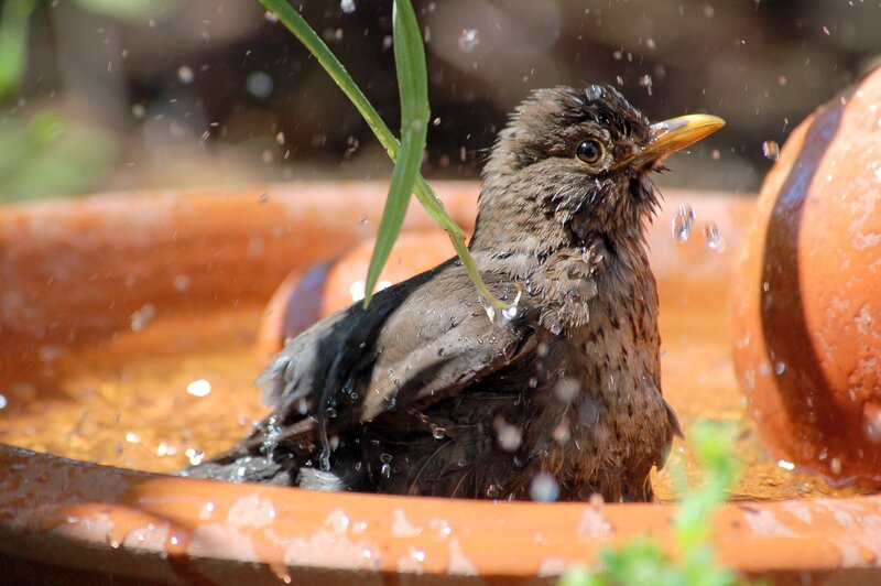 - Bieten Sie Vögeln Bad- und Trinkmöglichkeiten an.