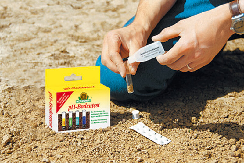 Tipp: Prüfen Sie jährlich im Frühjahr den pH-Wert mit dem pH-Bodentest. Bei Bedarf kalken Sie. Der kohlensaure Naturkalk aus fossilen Meeresablagerungen aktiviert das Bodenleben, lockert den Boden und macht ihn wieder fruchtbar.