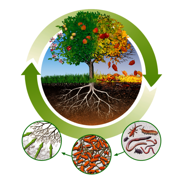Nur durch die unglaubliche Vielfalt und Vielzahl dieser Organismen im Boden ist es möglich die organische Substanz (Blätter, Ernterückstände, Fallobst u.a.) in Nährstoffe umzuwandeln, die den Pflanzen wieder zur Verfügung stehen. Ein perfektes Recycling-System!
