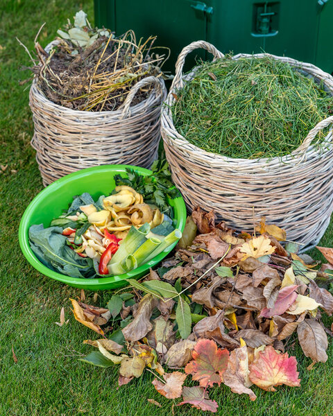- ausreichend Nährstoffe, am besten in einer Mischung aus verschiedenen organischen Bestandteilen. Deshalb trockene, nährstoffarme Materialien wie Laub und zerhäckselten Baumschnitt mit strukturschwachen, nährstoffreichen Materialien wie Rasenschnitt und Küchenabfällen mischen. So wird ein günstiges C:N-Verhältnis (Kohlenstoff: Stickstoff) erreicht.