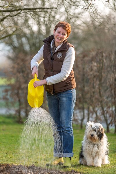 Es sollte nicht windig sein bei der Aussaat! Vor dem Aussäen das Wildgärtner Freude-Saatgut gut vermischen. Bei der Lagerung können sich die unterschiedlich großen Samen entmischt haben. Samen gleichmäßig auf den Boden streuen und mit der Schaufel oder einer Walze, falls vorhanden, andrücken. Sie brauchen die Samen nicht einzuharken!