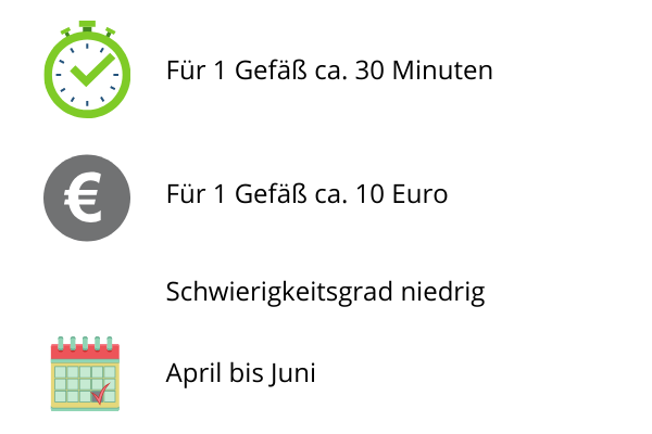 - Einen Topf oder Kasten. Es eignen sich auch leere Konservendosen oder ausrangierte Geschirrteile. Eine wichtige Voraussetzung: das Gefäß muss ein Abzugsloch haben, damit überschüssiges Wasser gut ablaufen kann.