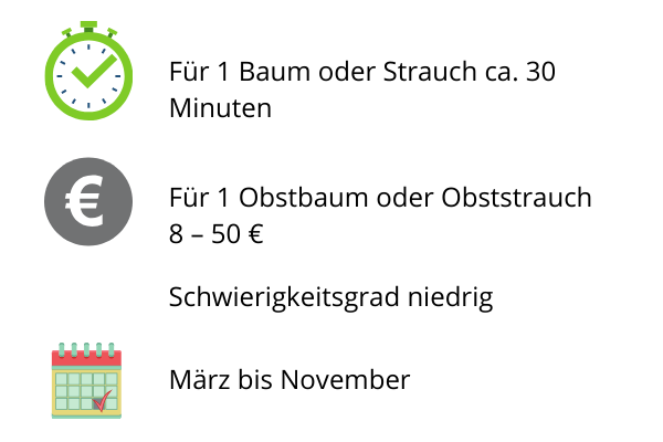 - Schneiden Sie Ihre Obstbäume und –sträucher regelmäßig aus. Wie das geht und wann Sie am besten schneiden, erfahren Sie in unserem Ratgeber „Baumschnitt“. Kostenloser Download