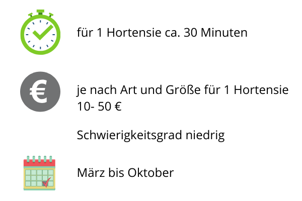 - Achten Sie unbedingt auf die angegebene Wuchshöhe auf dem Topfetikett der Hortensie, damit Sie später keine Überraschungen erleben.