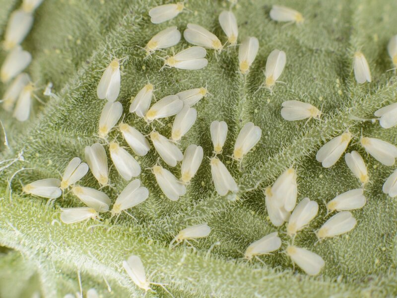 Weiße Fliegen befallen gerne Tomaten, Paprika, Kohlarten, wie z. B. Weiß-, Rotkohl und Kohlrabi. Geranien, Fleißige Lieschen und Rhododendron sind bevorzugte Zierpflanzen.