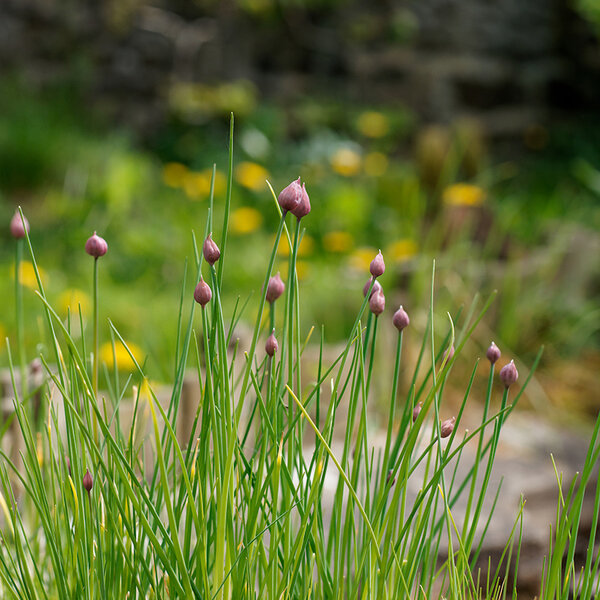 Das heimische Küchenkraut mit seinen violetten Kugelblüten ist ein schöner Blickfang, und das langstängelige Laub ist bis in den Winter frischgrün und ansehnlich.