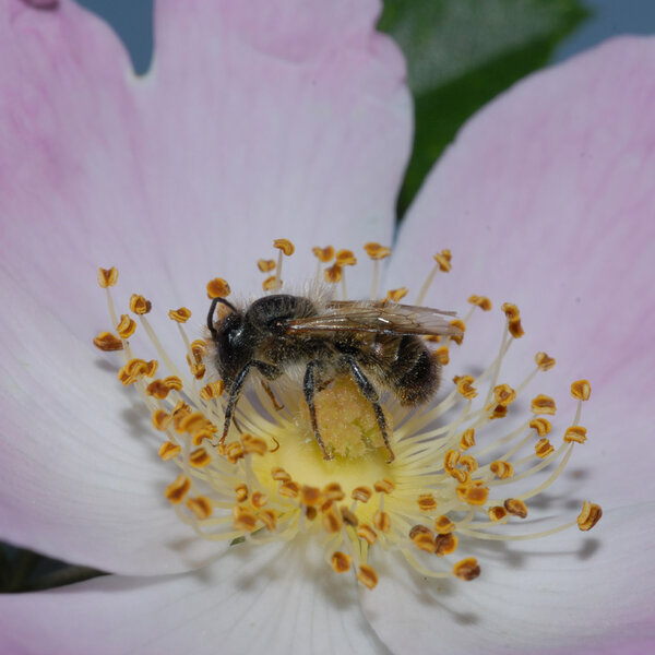 Wildbienen haben zwar einen Stachel, jedoch ist dieser so schwach ausgebildet, dass er die menschliche Haut nicht durchdringen kann. Zudem sind die Tiere äußerst friedfertig, so dass sie sich sehr gut beobachten lassen.