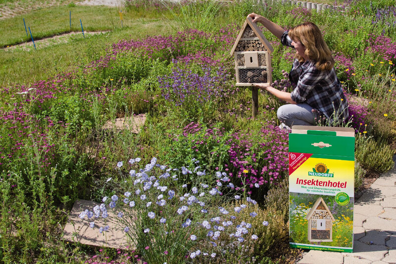 - stellen Sie mindestens ein Insektenhotel von Neudorff in Ihrem Garten auf