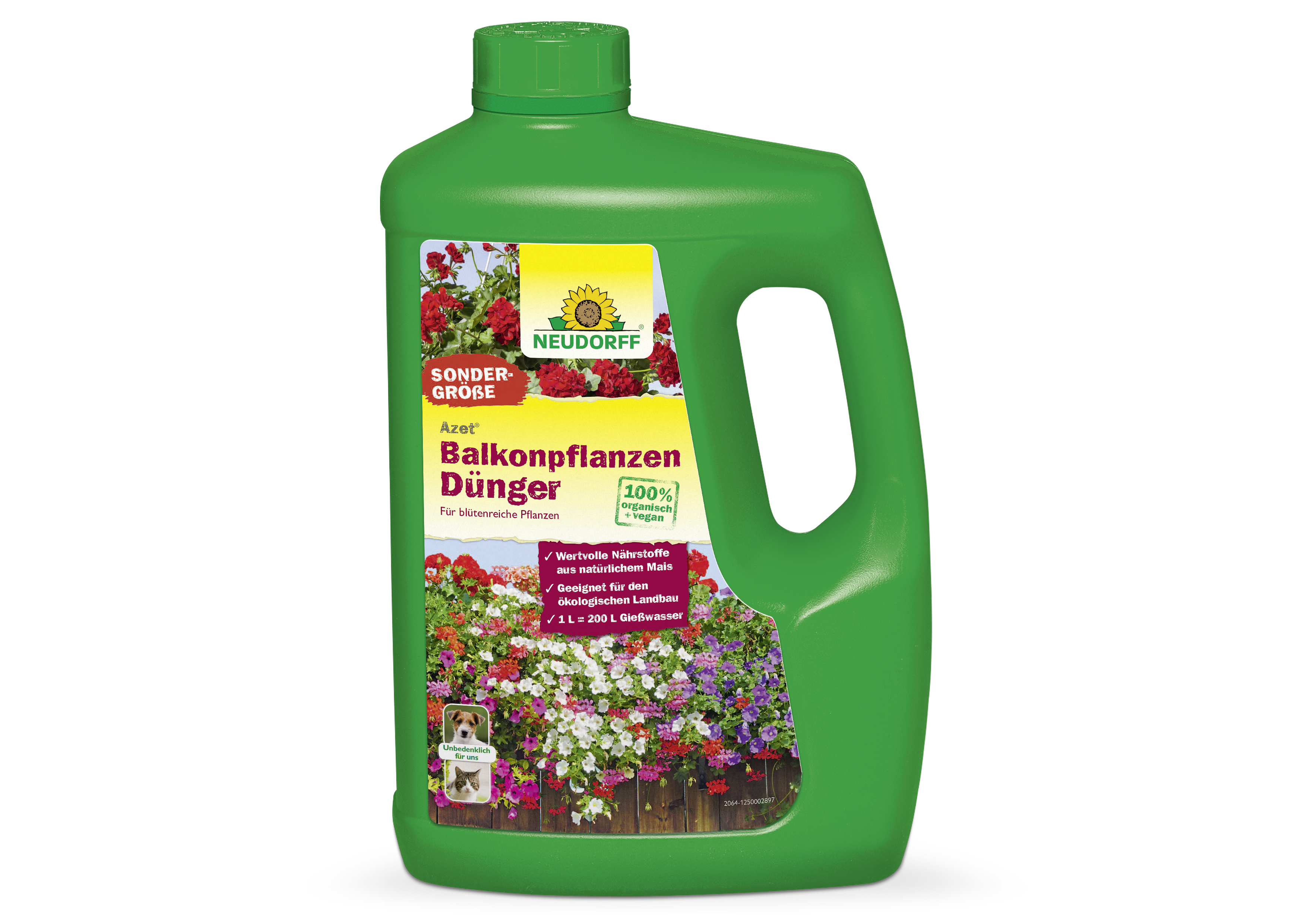 Alle Pflanzen in Töpfen, Kübeln, Balkonkästen: 1 gehäufter TL pro Liter Blumenerde aufstreuen und leicht einarbeiten