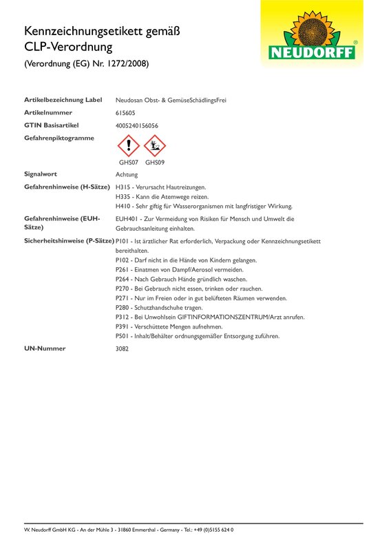 - Nützlingsschonend und in Deutschland eingestuft als nicht bienengefährlich (NB 6641) Geeignet für den ökologischen Landbau gemäß der Verordnung (EG) Nr. 834/2007