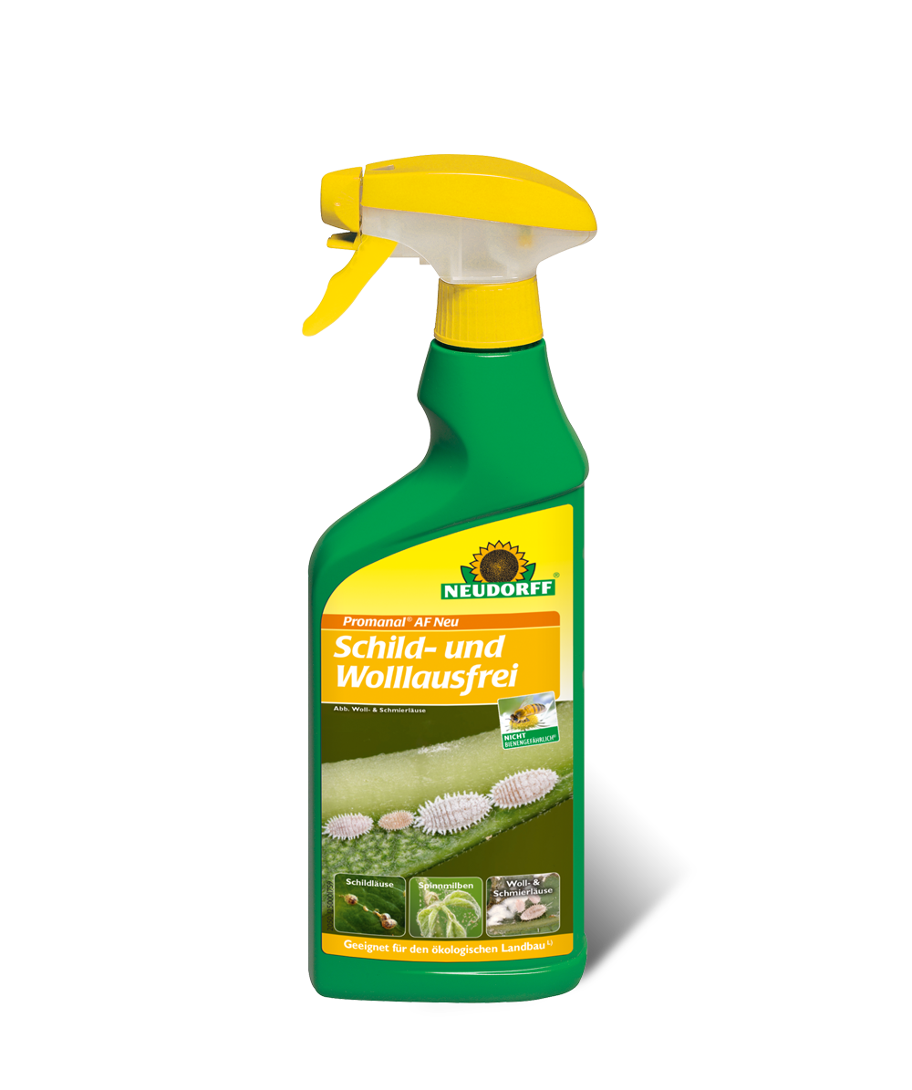 Promanal AF Neu Schild- und Wolllausfrei*,°° ist ein Fertigpräparat. Hebel unterhalb der Sprühdüse drücken, dabei