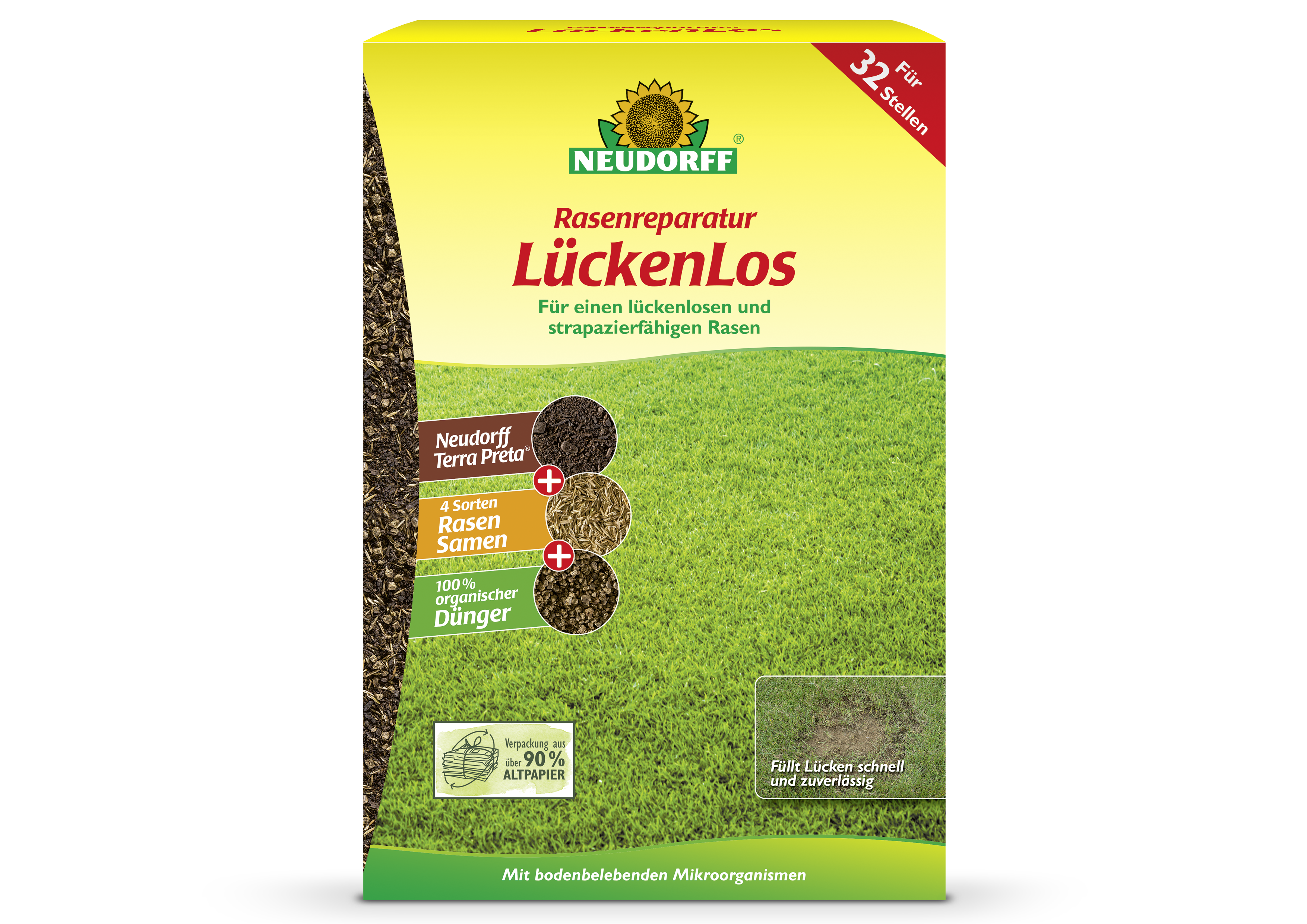 - anwendungsfertige Spezialmischung mit Rasensamen, Neudorff Terra Preta und 100% organischem Dünger