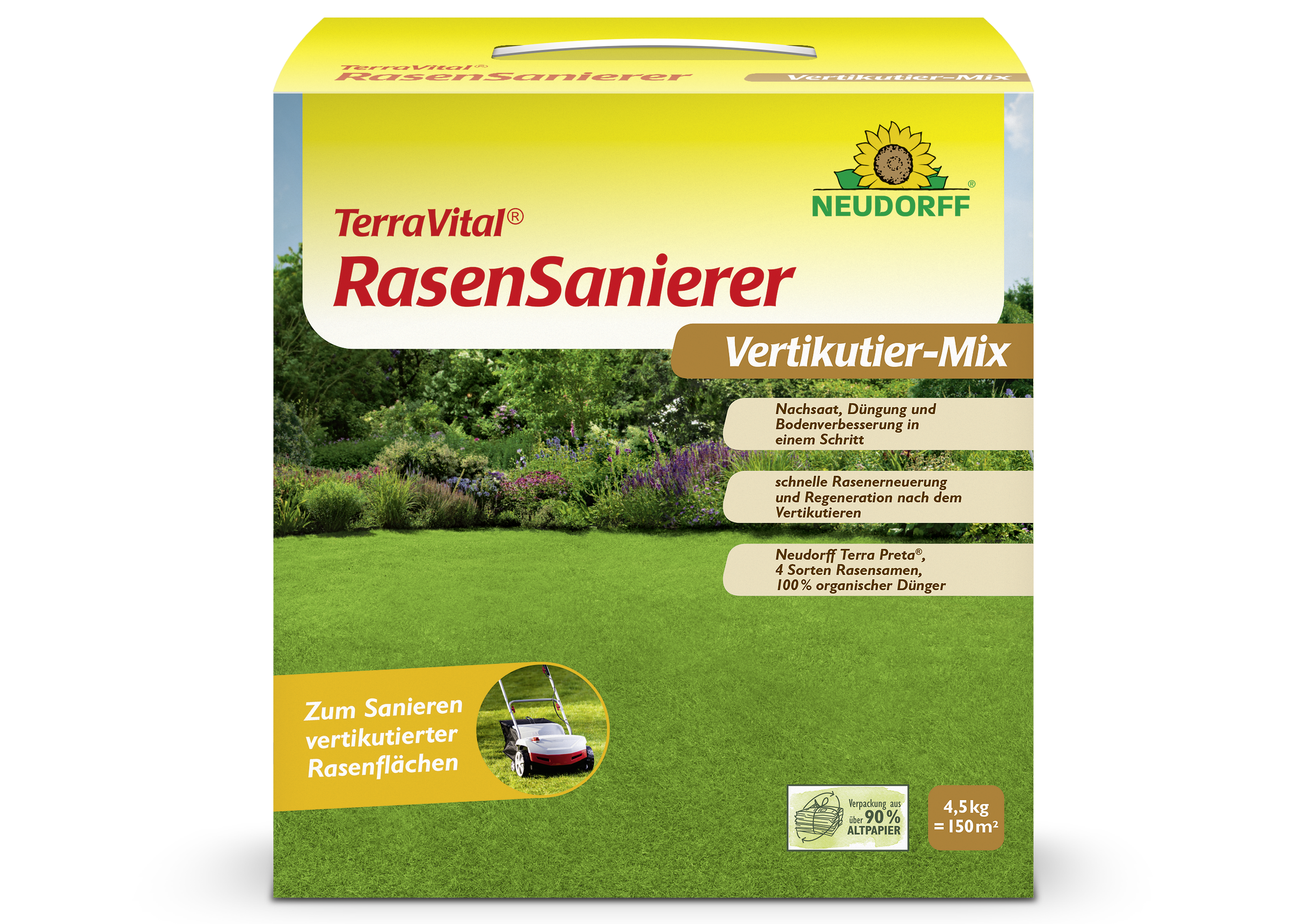 - anwendungsfertige Spezialmischung mit Rasensamen, Neudorff Terra Preta und 100% organischem Dünger