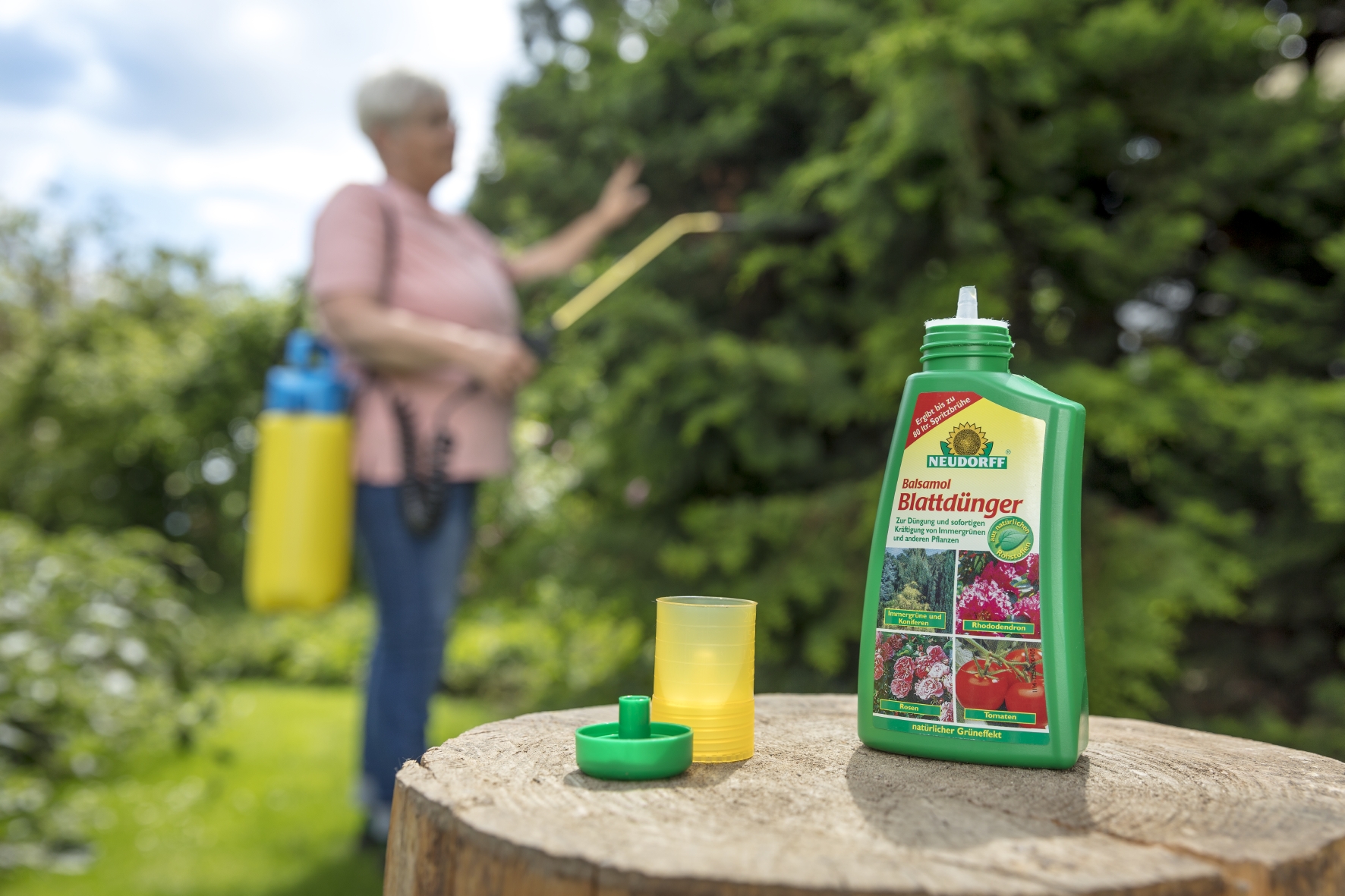 Nährstoffgabe in flüssiger Form über das Laub. Die Pflanze nimmt die Nährstoffe mit den Blättern auf. Dadurch wird ein schneller Effekt erzielt, denn die Nährstoffe können sehr schnell wirken. Wird vor allem für die Versorgung mit Stickstoff und Eisen (Ferramin Eisendünger) verwendet.