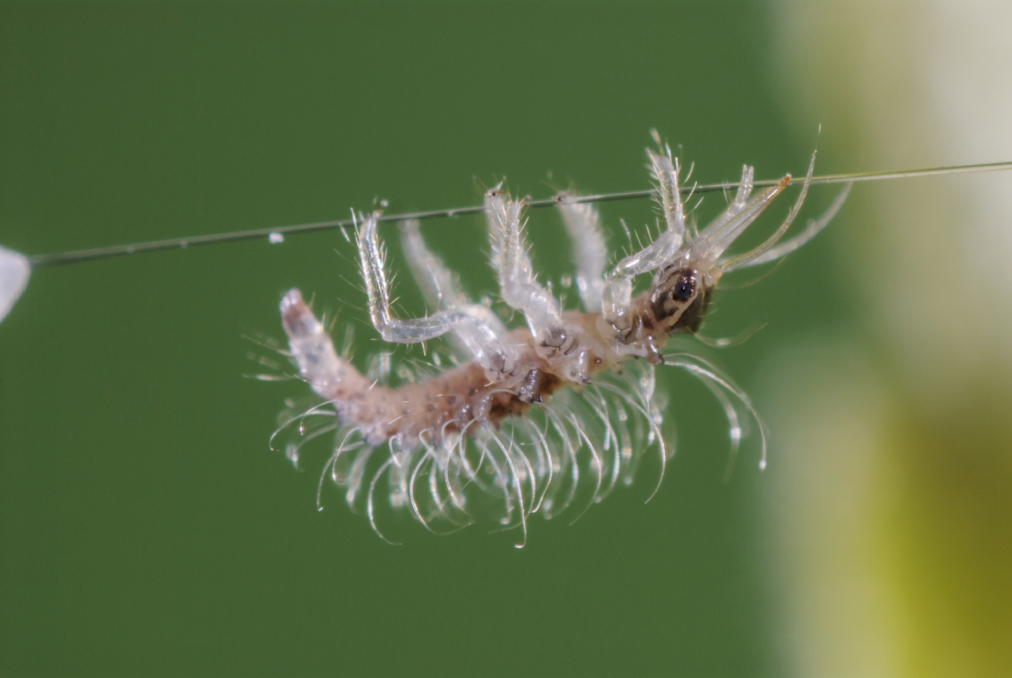 Heimische Nützlinge, die vor allem gegen Blattläuse und Thripse insbesondere in geschlossenen Räumen eingesetzt werden. Die Larven der Florfliegen (Chrysoperla carnea) packen die Schädlinge mit ihren Mundwerkzeugen und saugen sie aus. Eine Larve lebt etwa 2-3 Wochen und vertilgt in dieser Zeit bis zu 300-400 Blattläuse. Danach verpuppt sie sich und aus der Puppe schlüpft das erwachsene Tier. Da sich die erwachsenen Florfliegen von Pollen und Nektar ernähren, fliegen sie meist davon und suchen Blüten auf. Im Sommer können CC-Florfliegen auch im Freien eingesetzt werden. Erhältlich über Bestell-Sets für Nützlinge gegen Schadinsekten im Gartenfachhandel.